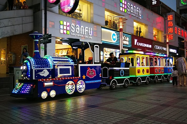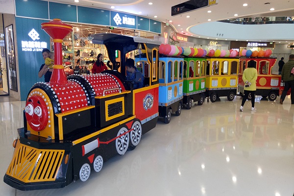 Besides, the whole train consists of 4 carriages, and the overall dimensions of the mall kid train ride for sale are 12.5 m*1.5 m*2.1 m. However, its turning diameter is 3 m. So the width of your entire mall had better be greater than 3 m. In addition, its running speed is very stable, about 10 km/h. But emergency braking distance of this train is indeed less than 0.5 m. So it can guarantee the safety of passengers to a great extent.